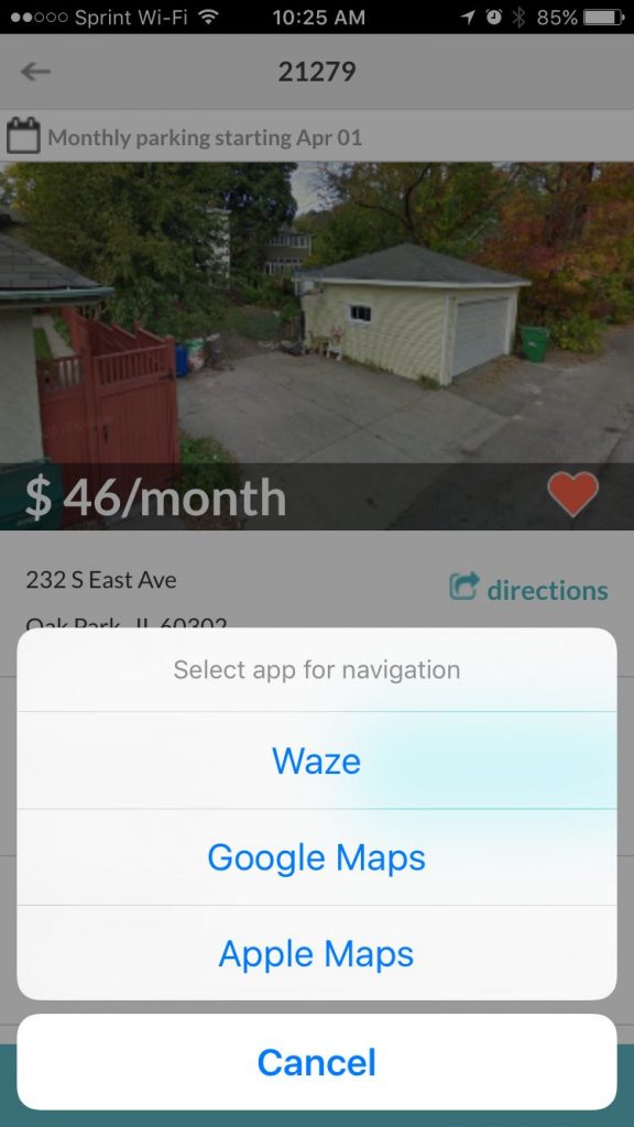 3. Navigate to the parking location using your favorite app:Â Clicking on the app, will open the navigation app with the parking destination address.That’s it! Go ahead and navigate to your destination.