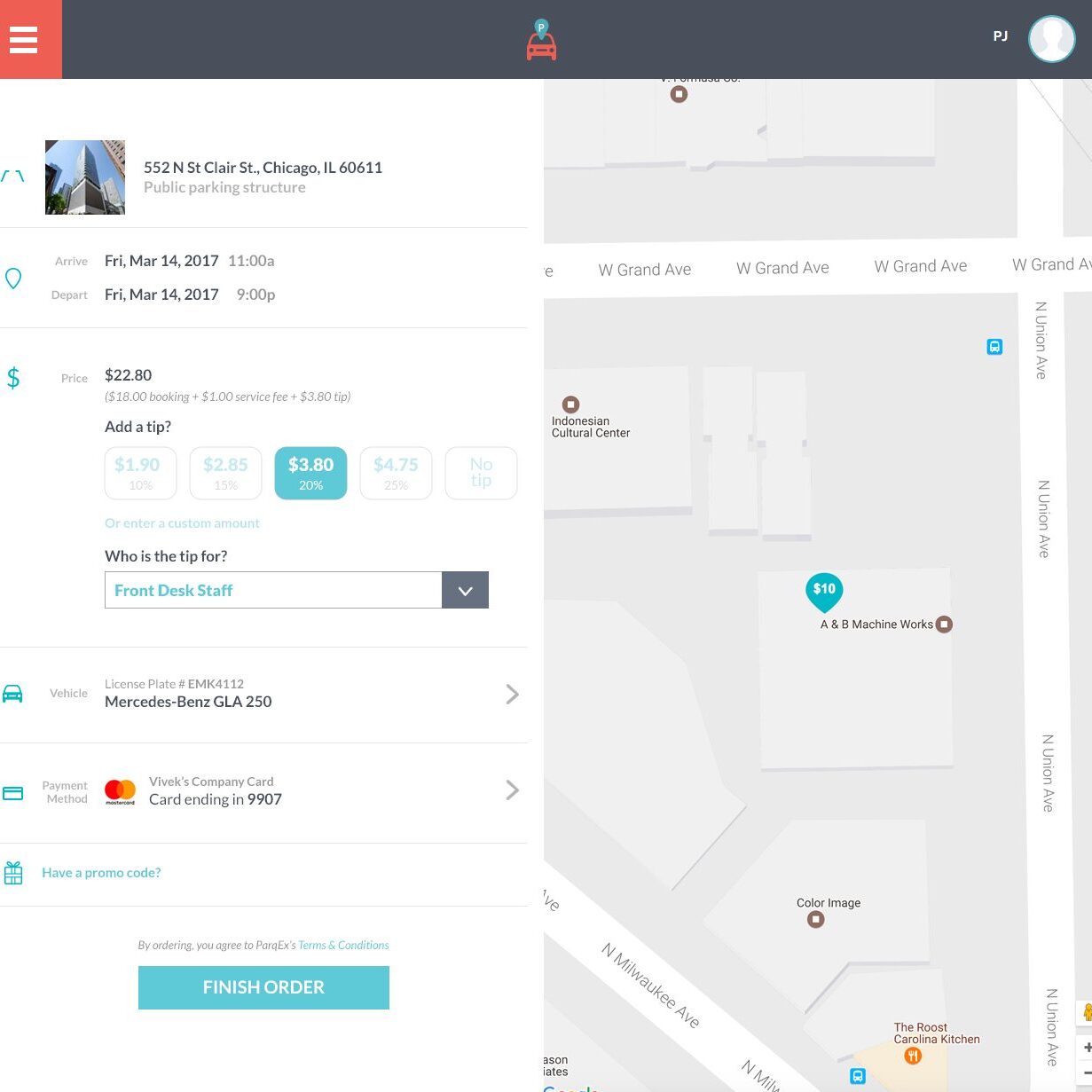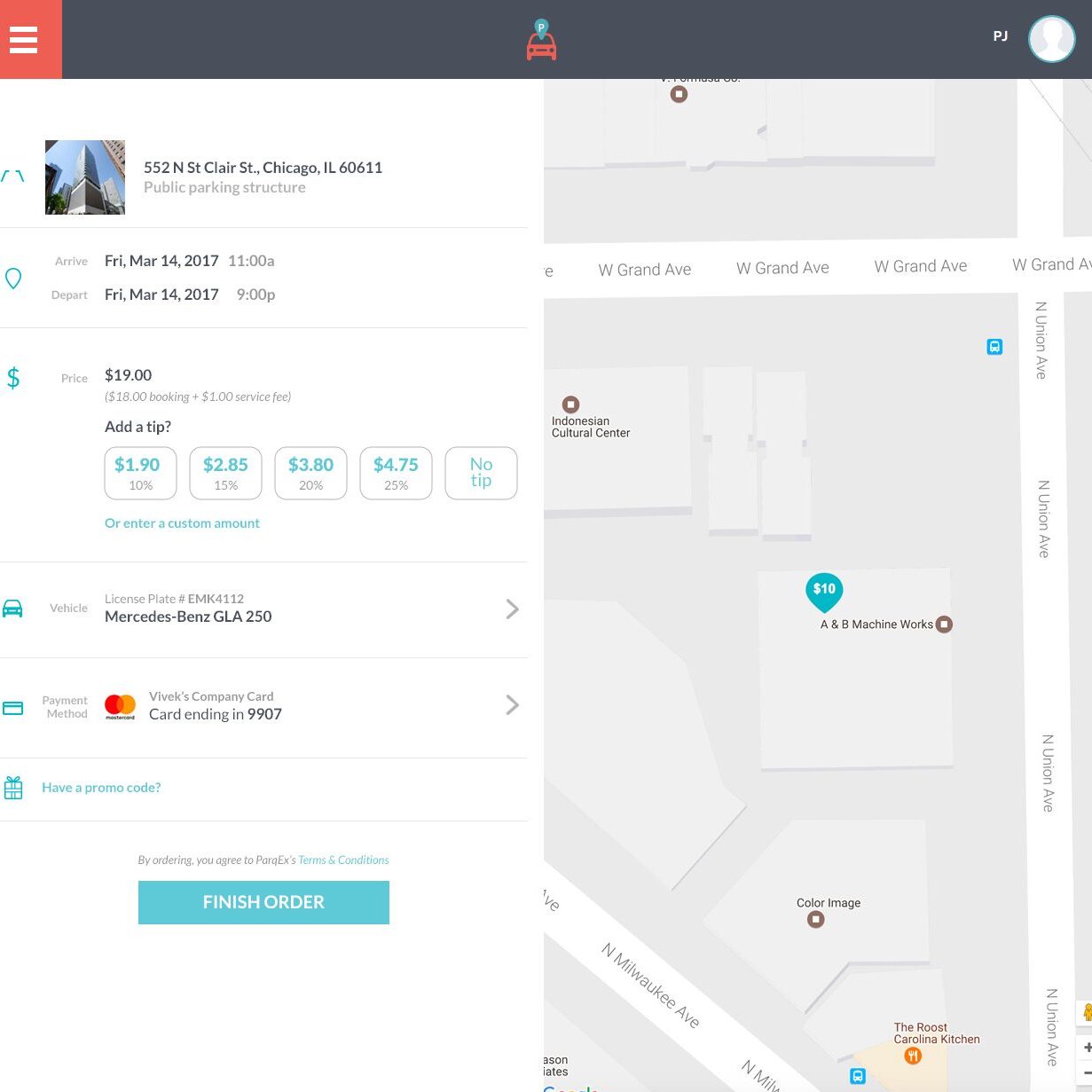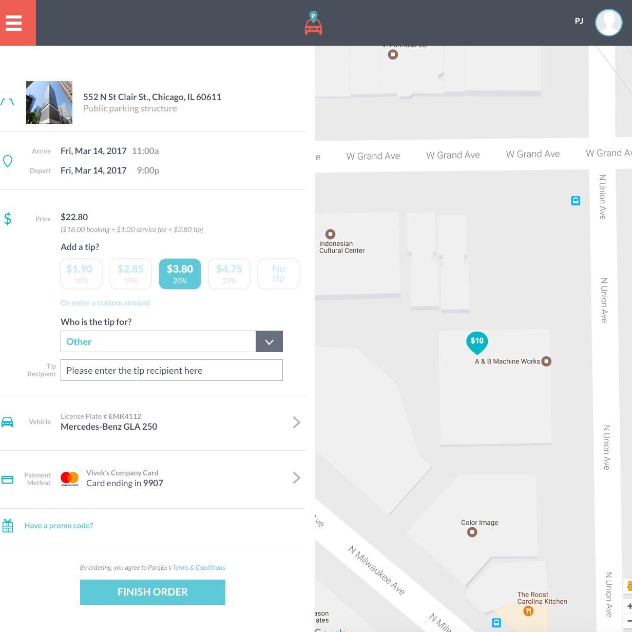 Service Gratuity (Tip) Feature by ParqEx