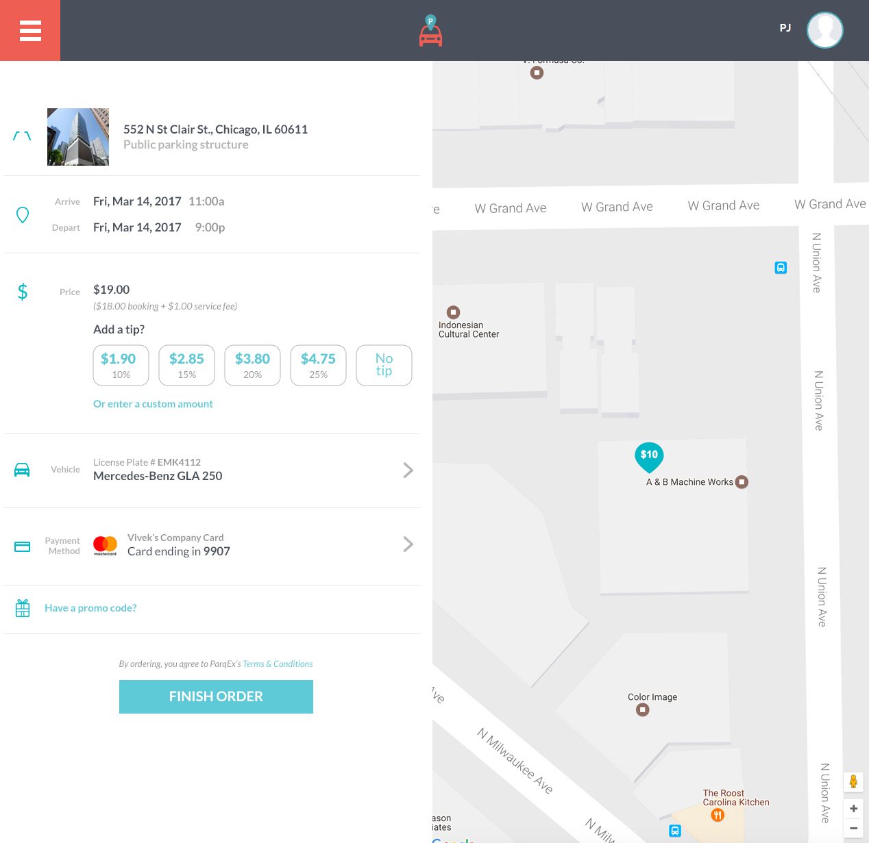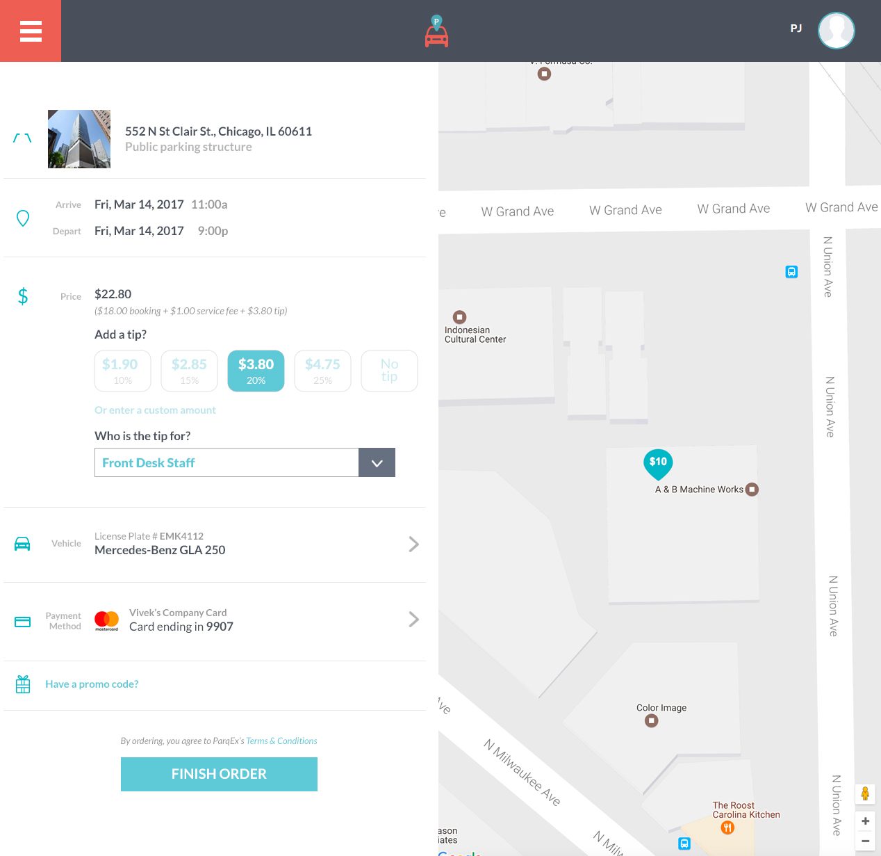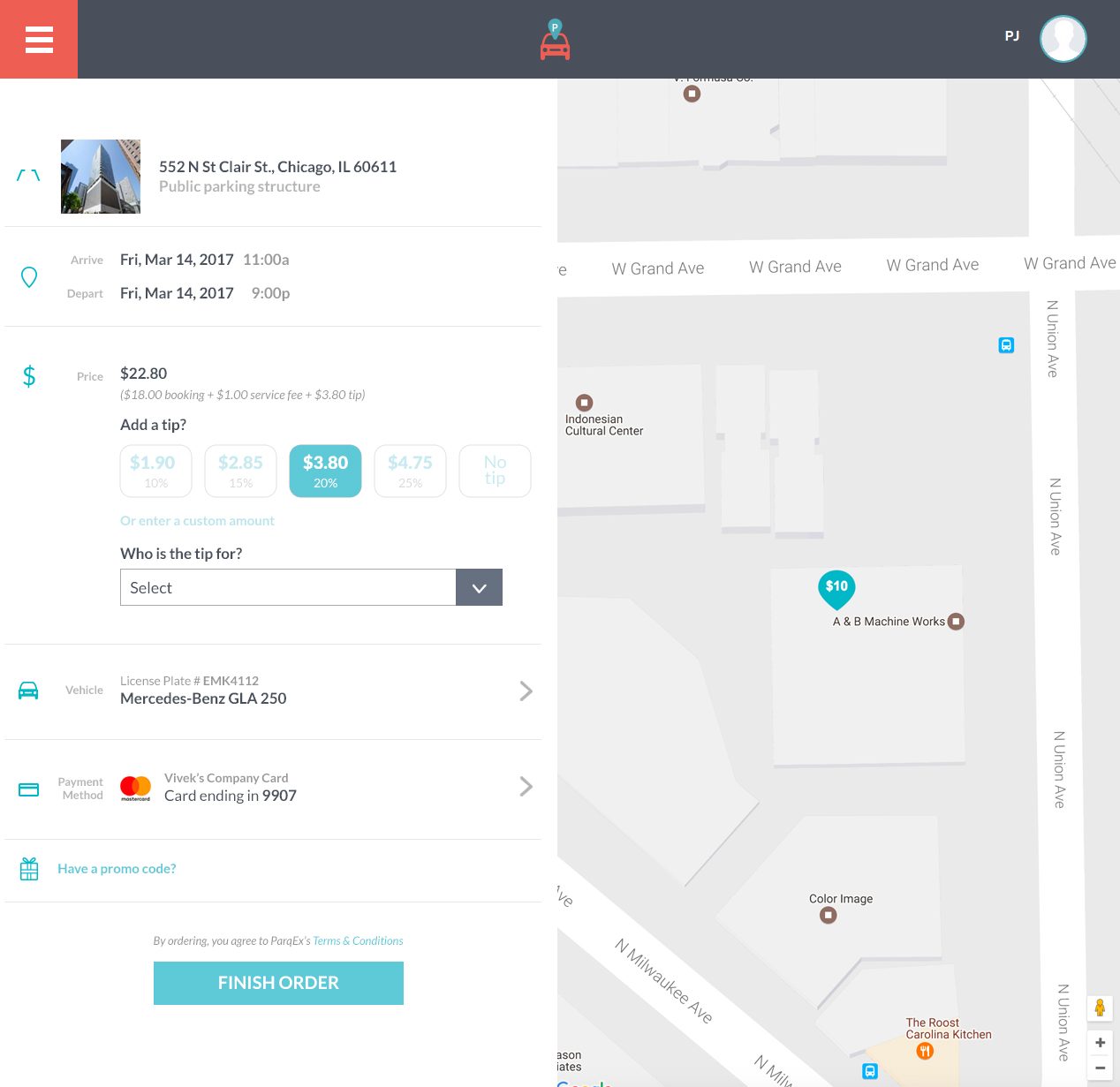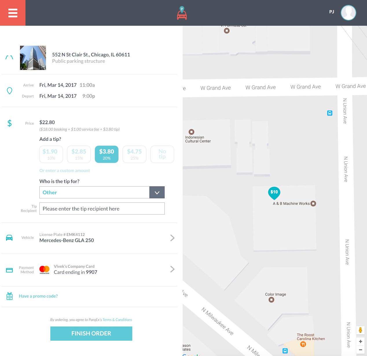 Service Gratuity (Tip) Feature by ParqEx